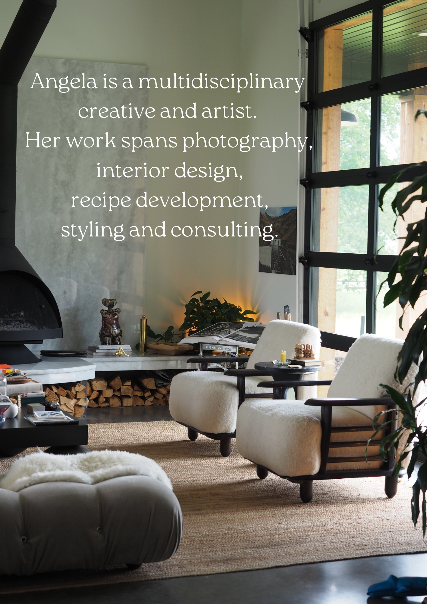 Angela’s work also includes interior design, creating beautiful and functional spaces that speak to her client’s personalities. Her recipe development skills are equally impressive, creating delicious and visually appealing dishes in every season.